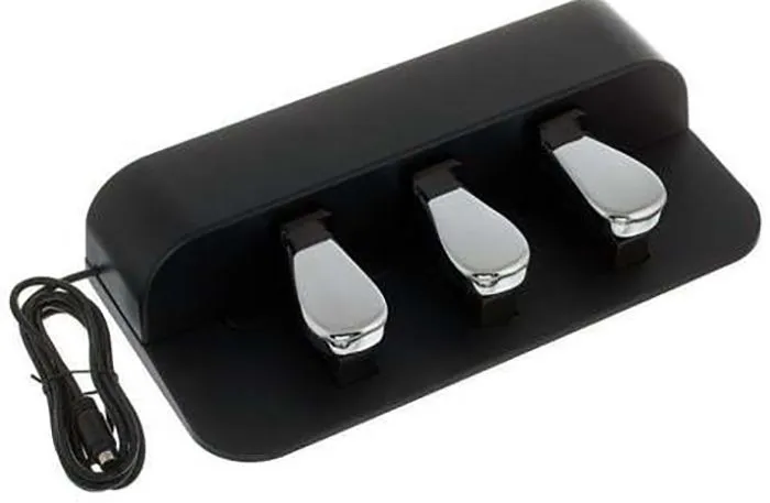 Casio SP-34 – фирменный аксессуар, тройная педаль для цифровых пианино Casio линеек Privia и CDP-S. Подходит для моделей: PX-S1000, PX-S3000, CDP-S350. Тройной блок устанавливается непосредственно на пол и предоставляет полный функционал: soft (приглушение), sostenuto (сдерживание темпа), педаль экспрессии (sustain). Поддерживается демпферная функция, эффект полупедали: симулирование звучания акустического рояля при неполном нажатии педали. Блок педалей выполнен в черном цвете, педали – блестящие хромированные. Вес модели в упаковке – 3,9 кг.