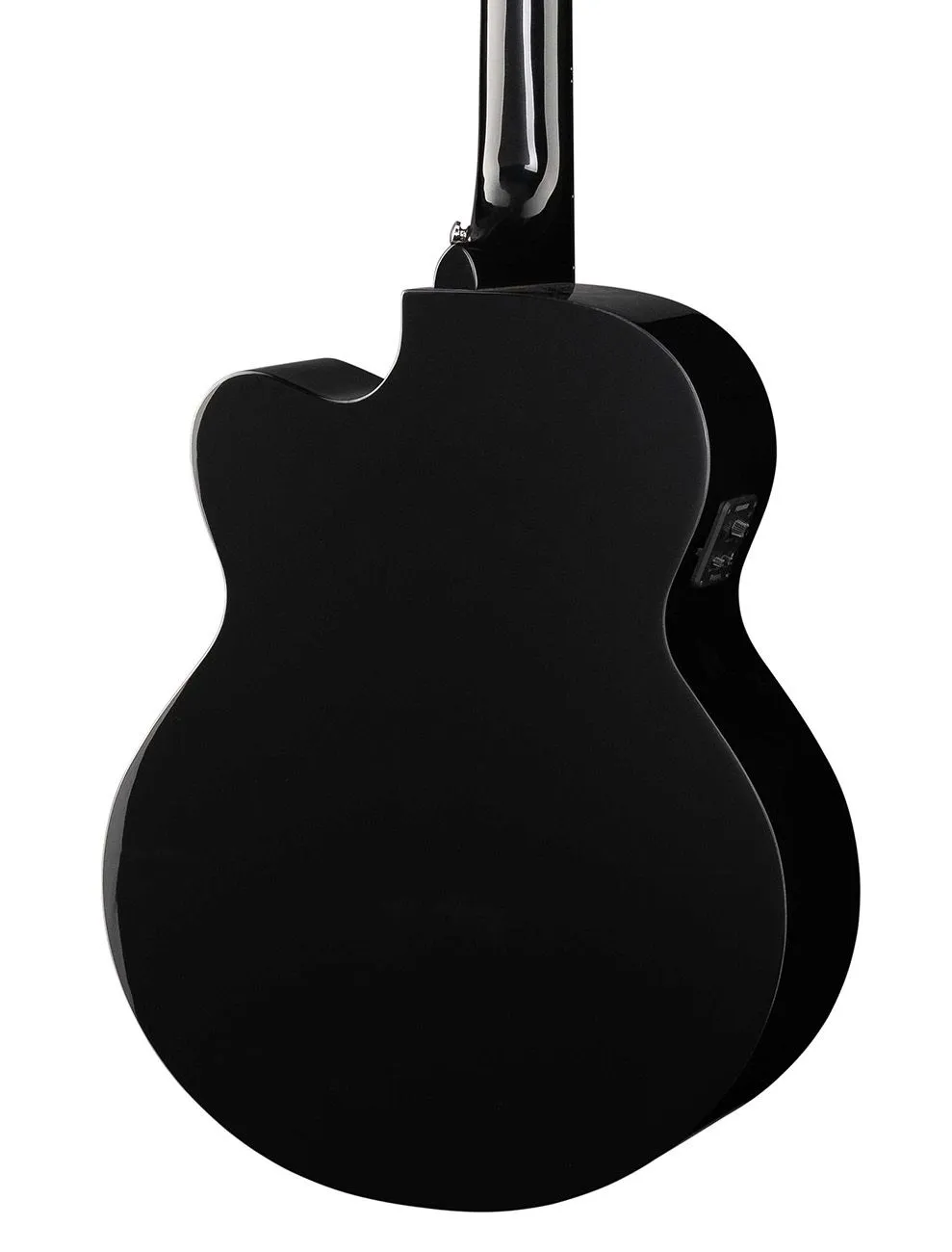 Полноразмерный корпус джамбо создает насыщенное звучание с большим количеством баса и исключительной громкостью. Вырез облегчает доступ к верхним ладам.