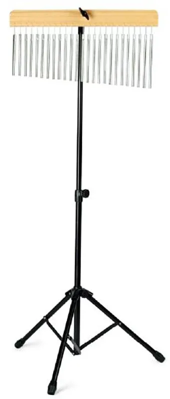 Хромированные трубочки на деревянном основании, черная металлическая стойка.