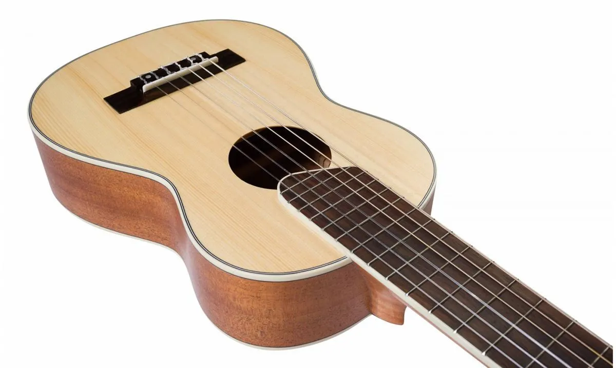 Ламинированная дека гиталеле более проста и неприхотлива в уходе, поэтому гиталеле с декой из ламината наиболее удачный вариант, если вы хотите приобрести инструмент для путешествий.
