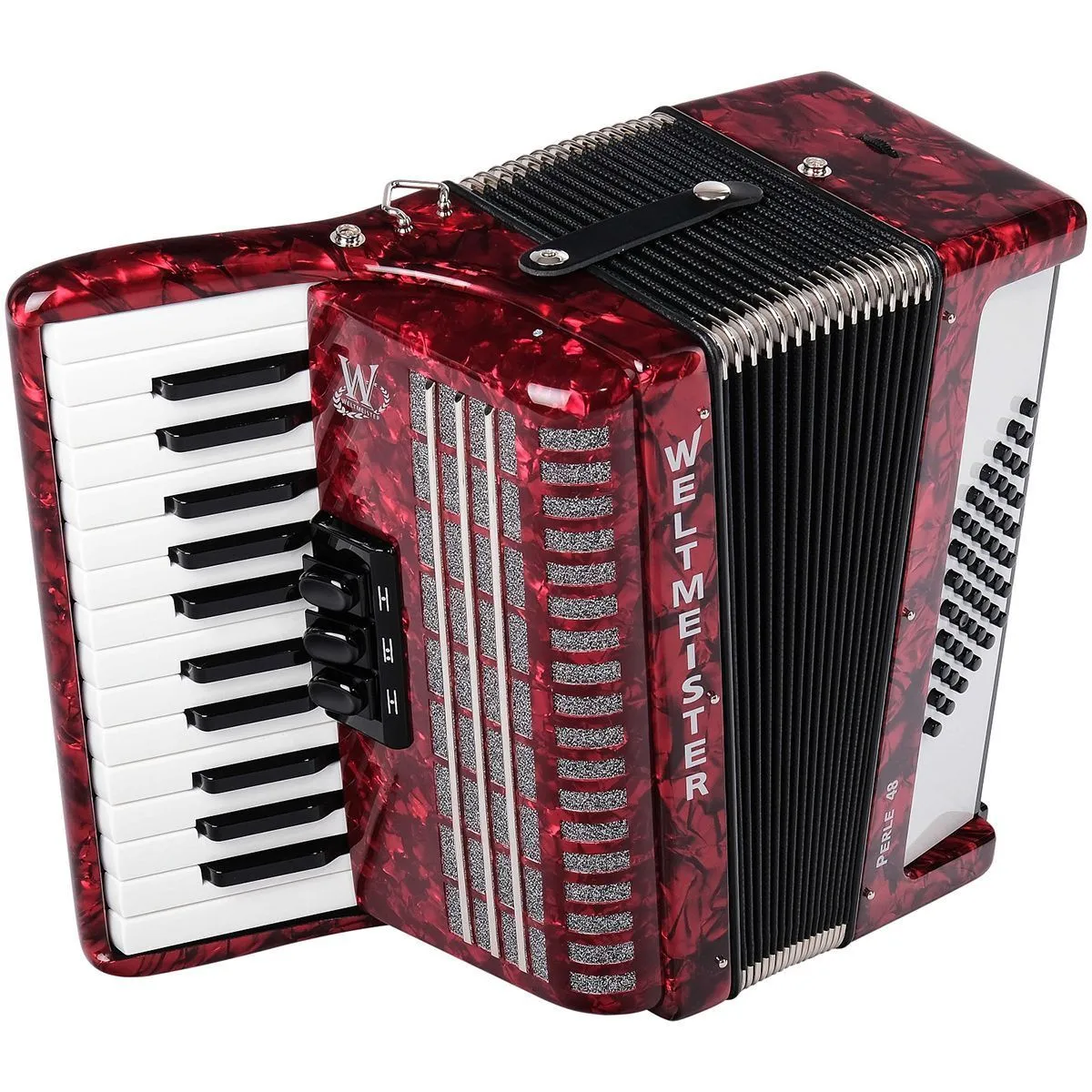 Weltmeister Perle-II-48/26-RD Perle Аккордеон 26/48/II/3, красный, с ремнями и футляром.